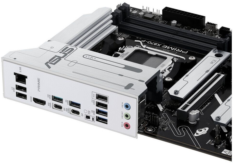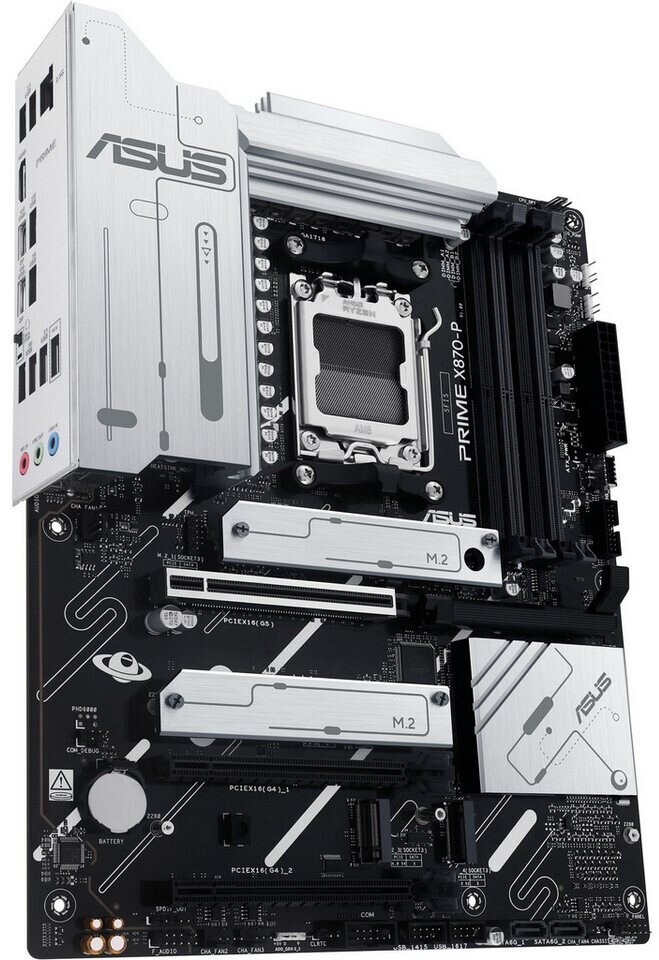 Das ASUS PRIME X870-P basiert auf dem AMD-X870-Chipsatz und unterstützt AMD-Prozessoren für den Sockel AM5. Es verfügt über vier DDR5-Slots für bis zu 192 GB Arbeitsspeicher. Zur weiteren Ausstattung des ASUS PRIME X870-P gehören ein PCIe-5.0-x16-Slot und ein PCIe-4.0-x16-Slot (x4 Lanes). Außerdem verfügt das ASUS PRIME X870-P über 8-Kanal-Sound, eine 2.5 Gigabit-LAN-Schnittstelle, zwei SATA3-Anschlüsse, vier M.2-Anschlüsse und eine Reihe an USB Schnittstellen.