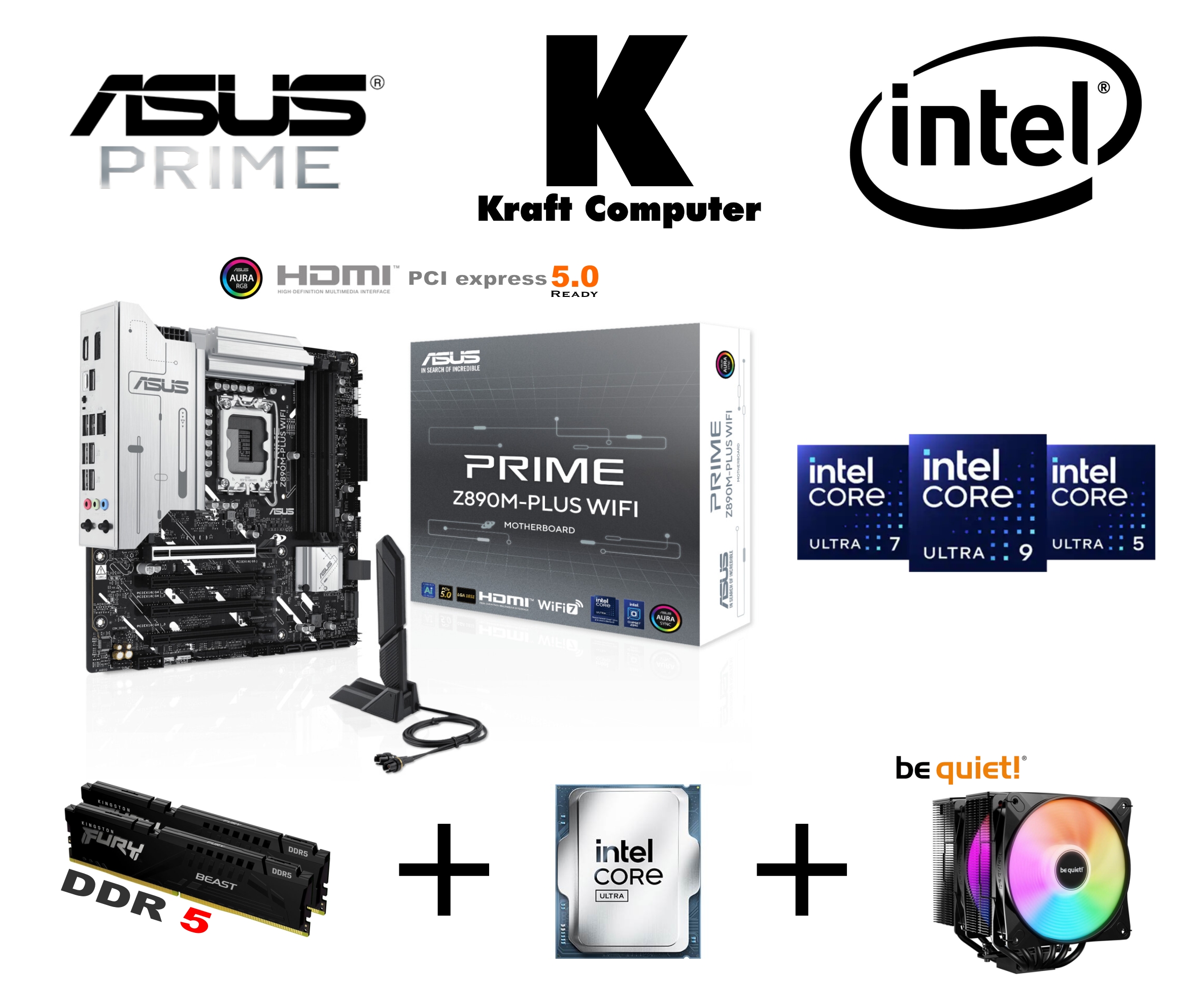 PC Bundle Intel Core Ultra 7 265KF (20x 3,9 bis 5,5GHz) + ASUS PRIME Z890M-PLUS WIFI